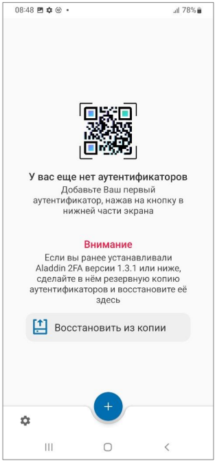 В приложении Aladdin 2FA реализован следующий функционал: