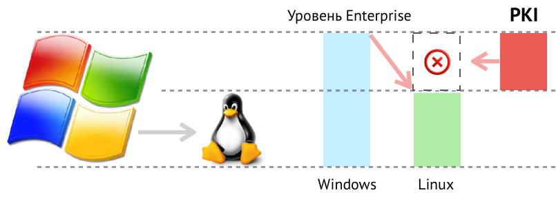 1. Внедрить корпоративную PKI — доверенный СА под Linux, который заменит MS CA — единую точку отказа, обеспечив бесшовный переход без остановки работы всех сервисов. Это обеспечит возможность "жить на два дома" — одновременно пользоваться ресурсами и из мира Windows, и новыми, из мира Linux.
