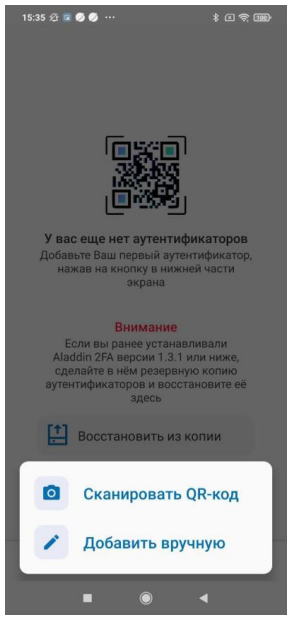 - Добавление аутентификатора (сканированием, вручную, переходом по ссылке из письма (на мобильном устройстве))