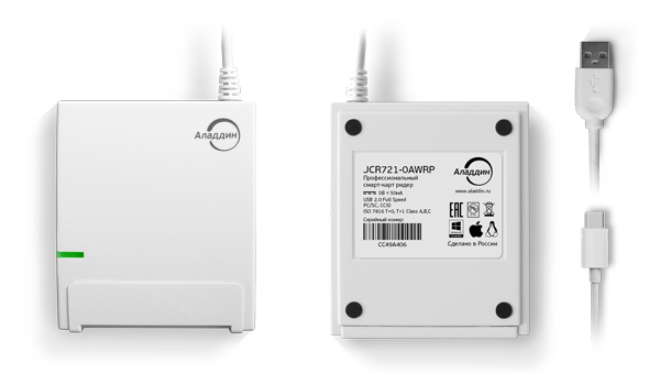 - Является CCID-совместимым устройством, не требует установки специальных драйверов и работает сразу при подключении к USB-порту компьютера (Plug and Play)